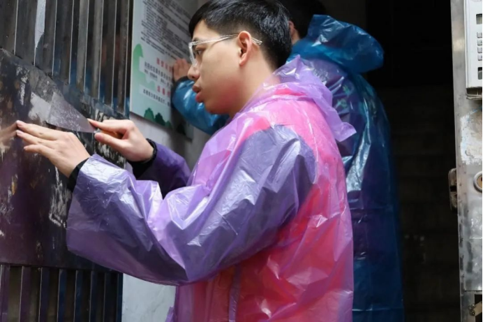 为积极响应衡阳市创建文明城市的号召,以高度的责任心参与文明城市和文明校园创建工作。402永利集团,402cc永利官网“数之云”志愿服务队于3月25日早上8点前往石鼓区向阳社区开展“我为文明城市创建做贡献”主题志愿服务活动,同学们用实际行动践行雷锋精神,助力创文巩卫,共同描绘志愿服务的美好画卷。大学生志愿者们统一身着红马甲及雨衣,深入到向阳社区各个片区与楼栋,大家分工明确,配合默契,充分发扬不怕苦、不怕累、不怕脏的精神,对小区院内的杂草、垃圾、烟头等进行了全面清理打扫。