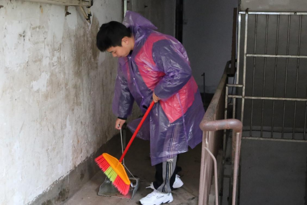 随意乱堆放垃圾不仅影响小区整体环境,还容易滋生细菌,直接影响居民个人的生活。紧接着志愿者们认真清理楼道、门窗,打扫卫生死角,帮助居民清理堆放的杂物,并应居民诉求,向社区相关工作人员反应楼道积水等问题。实实在在地帮助居民解决问题。