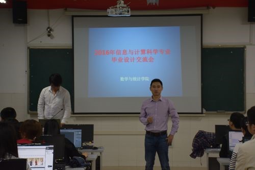 为使信息与计算科学专业的同学更加了解本专业的毕业设计工作和专业发展方向与前景,5月15日上午,402永利集团在数学楼303成功举办了2016年信息与计算科学专业毕业设计交流会。本次会议邀请了2012级毕业生钟敏、杜元金、胡想容和简刚平作为主讲,学院副院长李龙博士、李元旦老师、周勇老师和王增波老师,以及2013和2014级学生参加了本次交流会。