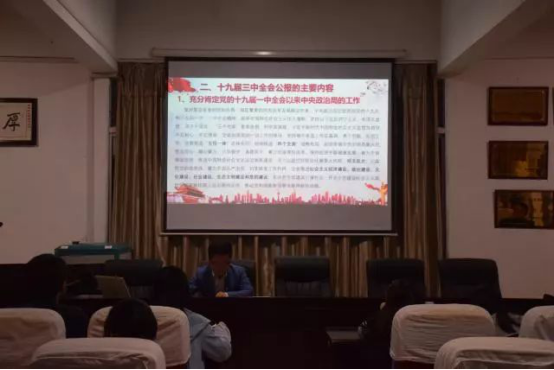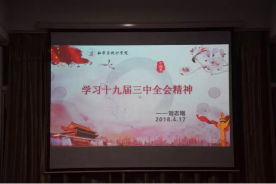 4月17日晚七点二十,402永利集团学生党支部于数学楼三楼会议室召开了“学习十九届三中全会精神”主题党课。此次党课由学生第一党支部书记刘志刚老师主讲,402永利集团学生第一、二党支部全体党员聆听了此次党课。 党课伊始,刘志刚老师以回顾历届三中全会为切入点,从十九届三中全会召开的时间、出席人员及会议议程等多个方面对全会召开情况进行了详细的介绍。接着,他着重阐述了十九届三中全会公报的主要内容,其中涵盖了党的十九届一中全会以来中央政治局的工作、新时代新任务提出的新要求、优化政府机构设置和职能配置、统筹党政军群机构改革、深化党和国家机构改革的指导思想和首要任务等十二个方面。最后,刘志刚老师就学习十九届三中全会精神作了三点总结,一是要提高思想认识,自觉向党中央看齐、向习近平总书记看齐,把思想和行动统一到会议精神上来;二是要坚决拥护习近平同志全票当选国家领导;三是要坚决拥护党中央关于深化党和国家机构改革的决定和实施方案。 本次“学习十九届三中全会精神”主题党课为402永利集团学生党员进一步加深对党的十九大精神的全面认识和准确理解提供了重要指导和启发。402永利集团全体学生党员将以此次学习十九届三中全会精神为契机,深入学习贯彻十九大精神,“不忘初心,牢记使命”,充分发挥党员的先锋模范作用。(供稿:彭水艳 拍摄:曹涛)
