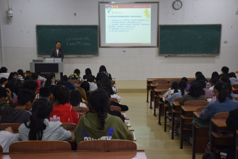 周长恩老师围绕《学生手册》中的各项条例展开了详细讲解,重点讲解了学生违纪处分的种类及适用、学分与绩点、学业考核与补考重修、课程与成绩记载规定、留级和退学的条件、国家与学校奖学金和评优评先的评定实施细则、学士学位授予办法、以及宿舍管理规定等几方面的内容。周老师提到,“没有规矩不成方圆”,同学们应当遵守相关条例规定,把《学生手册》作为自己的行动指南。在讲座中,周长恩老师以生动幽默的语言和真实的事例向同学们明确了违反校规校纪的惩处规定,希望同学们在接下来的大学生活中严格遵守校规校纪,争取在各项评优活动中崭露头角,为集体及个人争得更多荣誉。同时,他还告诫同学们大学是一个新的开始,要有忧患意识,努力学习,遵守校纪校规,谨言慎行,圆满地度过大学四年时光。最后,辅导员鼓励同学们除了要重视英语四六级和计算机等级考试之外,还要多参加科技竞赛和文体活动,多获得奖项和证书,丰富自己的阅历。