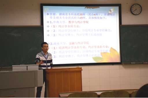 主讲老师分别从各专业的发展为切入点,结合专业培养目标、课程开设、大学目标和计划及就业前景等方面进行深入阐述。曾云辉老师主要从数学与应用专业是什么、转段生需要做什么、专业的就业方向等三大方面进行详细讲解。他指出,数学是一门逻辑性强、体系严谨的学科,因此在数学学习中预习、复习等自主性学习格外重要。在讲座中,曾老师提到转段生毕业后大多将从事教育工作,因此他建议转段生在数分、高代、解析几何等专业课程的学习上一定要多花时间。同时,他还激励同学们积极参与数学建模、师范技能大赛等与专业相关的竞赛。李元旦老师则主要从专业培养方向、专业发展、就业方向这三大方面进行阐述。他表示,大学生的职业规划应从早开始,对自己的人生道路要有一个明确而精准的定位。黄海午老师则重点介绍了统计学专业发展概况,指出该专业是研究大数据的方法论科学,最核心就是用数据“说话”。他还分析了湖南省内开设有统计学或跟统计学相关专业的院校,并提到在考研方面可以报考数理统计、经济统计学、应用统计学、应用概率、精算学与风险管理等。最后,老师们寄语了同学们美好的期望,希望每位学子全面发展、学有所成。