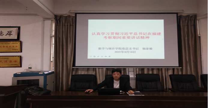 4月14日下午,402永利集团组织全院教职工开展政治理论集中学习暨教职工党员主题党日活动,专题学习习近平总书记3月22日至25日在福建考察期间重要讲话精神。学院党总支书记杨家骏主持学习会议并传达学习。