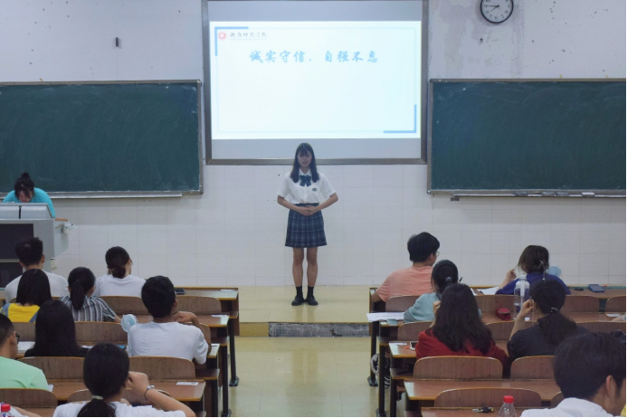 为增强当代大学生的诚信意识和责任意识,丰富诚信教育主题活动,6月14日晚7点半,402永利集团于理科1楼505教室举办了“正诚信之风,筑自强之基”主题演讲比赛,辅导员贺妮老师出席此次活动。