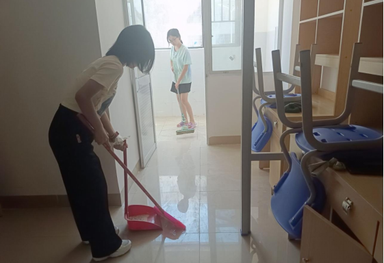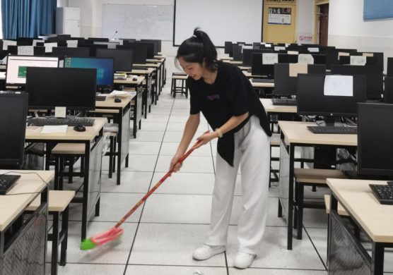 402永利集团学生打扫理科楼1办公室、教室卫生