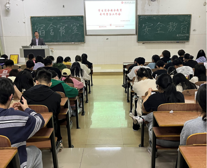 随后,党总支副书记彭正以“郡县治天下安”来说明寝室长岗位的重要性,学生宿舍安全教育与专项整治势在必行,并对消防安全、宿舍用电安全、实验室用电安全、校内建筑、食品安全、疫情防控、校外租房和交通安全整改作了详细布置。同时,他将这一段时间以来校园内外出现的安全问题进行总结归纳,并附以详细的案例讲解。紧接着,他借用“畏法度者最快乐”的典故向数统学生提出呼吁:希望同学们遵守学院相关制度,重视安全教育,培养良好的安全意识。最后,他强调,各寝室长应在大会结束后及时向室友传达会议要求,并对宿舍安全问题进行排查和整改,严格按照安全要求做好宿舍规范。