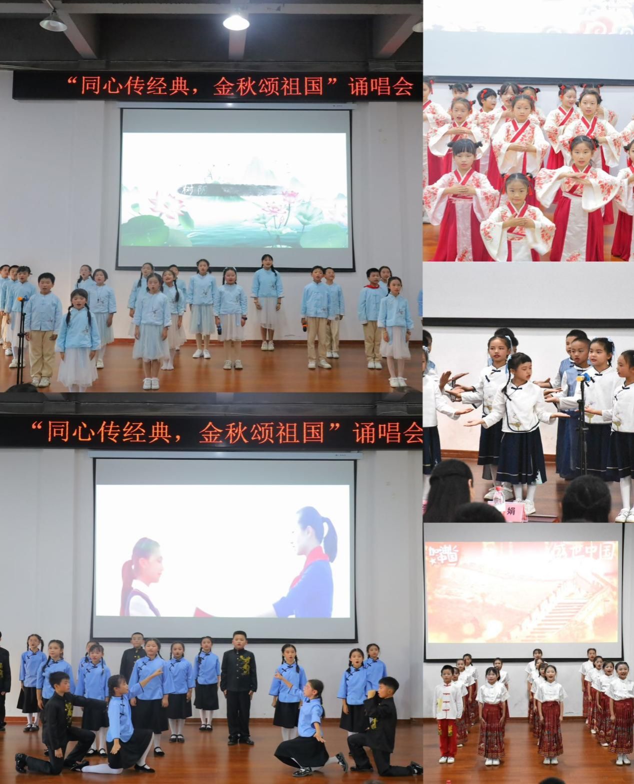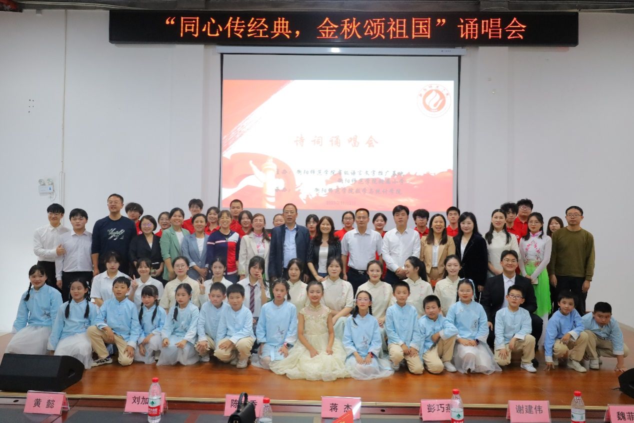 为深入贯彻落实党的二十大精神和《中华经典诵读工程实施方案》精神,切实发挥语言文字在传承发展中华优秀传统文化的重要作用,大力推动语言文化艺术在校园内的普及,提高学生的综合素养,402永利集团省级语言文字推广基地携手402永利集团附属小学、402永利集团,402cc永利官网,于11月2日在衡师附小演播厅开展“同心传经典,金秋颂祖国”诵唱活动。