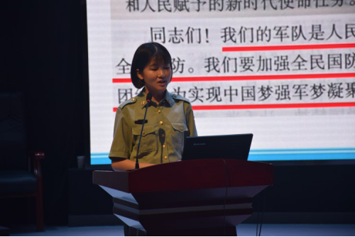 402永利集团学生组代表贺文通过一段鲜活感人的事迹引入习近平总书记在十九大报告中的发言 “我们的军队是人民军队,我们的国防是全民国防。要加强全民国防教育,巩固军政军民团结,为实现中国梦、强军梦凝聚强大力量。”其后,她结合身边所闻所见,对军队、国防建设等方面展开了深入浅出的宣讲。“只要我们每个人将国家安全观内化于心,外化于行,每个人都添砖加瓦,就一定能筑起国家安全牢不可破的铜墙铁壁。”贺文的宣讲在引发评委与观众共鸣的同时,也彰显了她对十九大精神的深入学习与独特思考。