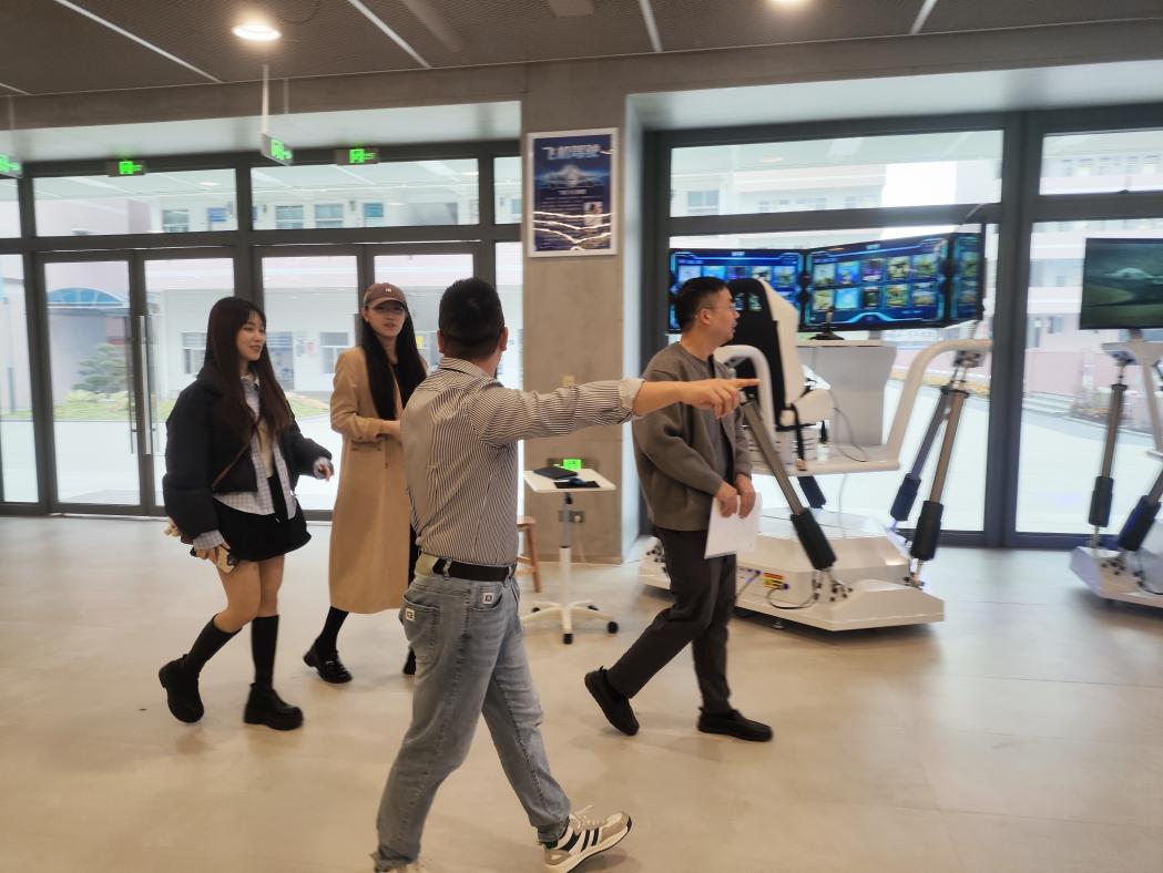 活动中,学院老师首先在金山中学党总支书记陆胜东的陪同下参观了金山中学的校园环境与教学设施。金山中学软硬件设施完备,尤其在科创教育方面特色鲜明,建有现代化的科创中心,内设智能机器人互动区、AI编程启蒙角、数学创意展示墙、VR科普展厅等特色空间,为学生提供了丰富的实践与创新平台,体现了学校注重科教融合、全面育人的办学理念。