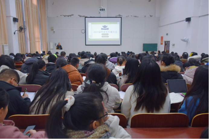 为加强2021届毕业生日常管理,有效落实学生毕业就业工作,12月8日下午三点,402永利集团在外语楼110教室召开了2021届毕业生年级大会。此次会议由402永利集团辅导员兼就业专干周长恩老师主持,2021届毕业生到场参加。