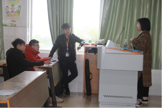 (院党总支书记邹梅山对现场学生服务工作人员指导工作)