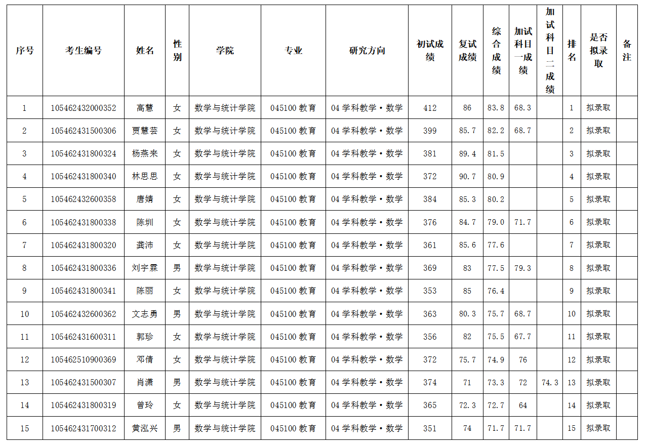 402永利集团数学与统计院2022年硕士研究生一志愿考生复试结果公示