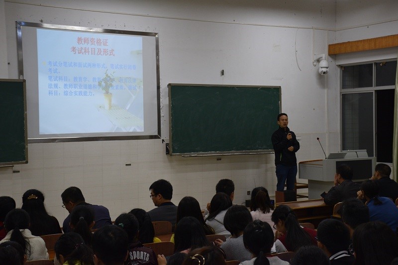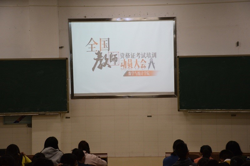 为促进新生高效备战教师资格证考试,11月7日晚,402永利集团在数学楼507教室召开了全国教师资格证考试培训动员大会。本次大会邀请了402永利集团党总支书记邹梅山、院长杨柳教授、院党总支副书记谭全球、副院长李龙博士、副院长李浏兰博士以及16级师范班班主任和指导教师,402永利集团2016级数学与应用数学专业全体学生及师范技能社部分成员积极参加了此次大会。