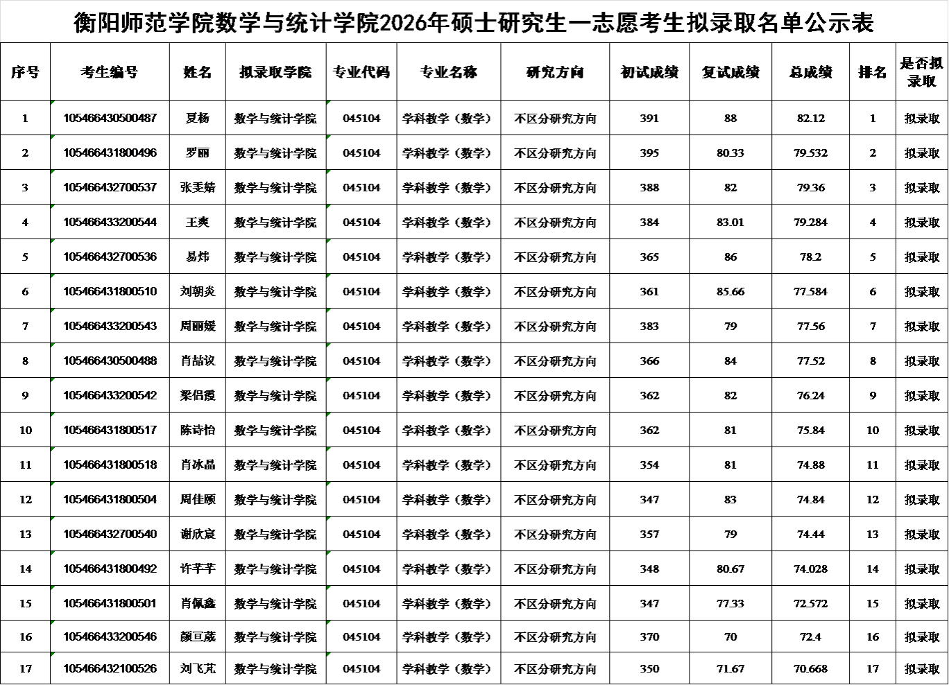 2026年402永利集团,402cc永利官网硕士研究生一志愿拟录取名单