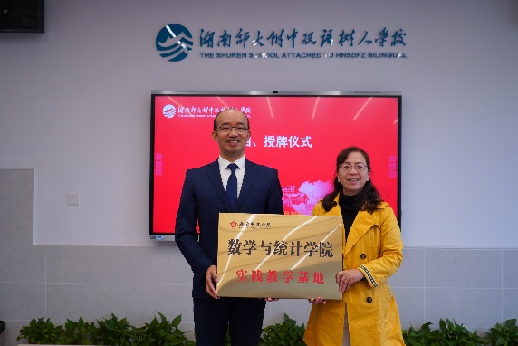 为深化校校合作协同育人,提升学科教学(数学)硕士研究生的教育实践能力,10月29日,在学院党总支书记彭巧燕等带领下,402永利集团研究生团队赴长沙市湖南师大附中双语树人学校,开展“雁城星谊·牵手树人”教育见习研习活动。在树人学校的精心组织下,本次活动涵盖校园参观、见面授牌、课堂观摩和评课研讨等环节,内容充实、节奏紧凑,师生收获丰富。