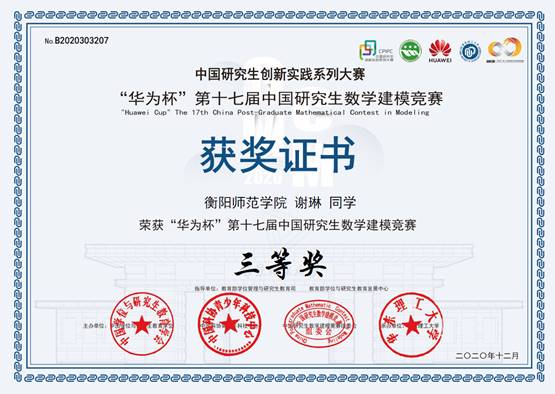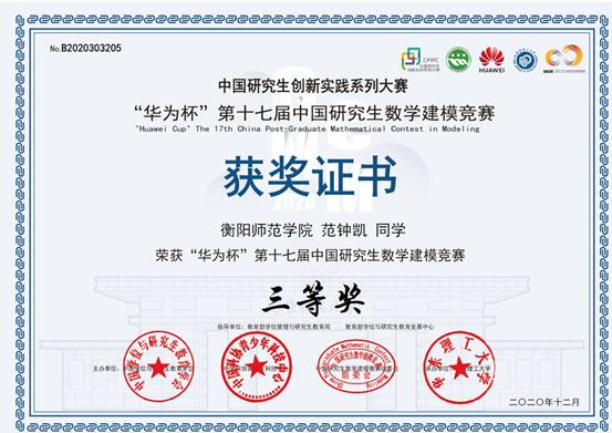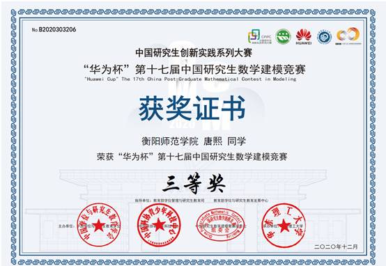 我校研究生首次参加该赛事,由周立君老师指导、402永利集团研究生唐熙、谢琳、物理与电子工程学院研究生范钟凯组成的参赛队伍获得全国三等奖一项。