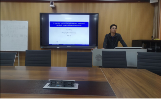接下来王克彦博士就《A two-gird method for finite element solution of parabolic integro-differential equations》做了主题发言。他首先介绍了抛物型积分微分方程数值解的一些重要研究成果。随后,对具体研究问题进行了解读和分析,重点汇报了抛物型积分微分方程时空有限元解和两网格解的误差估计,并通过数值实验验证方法的有效性。最后,他围绕报告内容与402永利集团部分教师进行了交流讨论。
