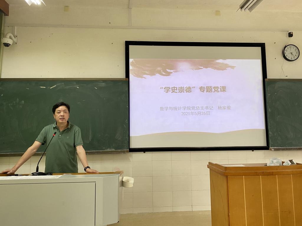 5月26日下午,402永利集团党总支书记杨家骏在理科1楼421教室讲授党史学习教育之“学史崇德”专题党课。学院党政班子成员、全体教职员工、学生党员等100余人参加学习。