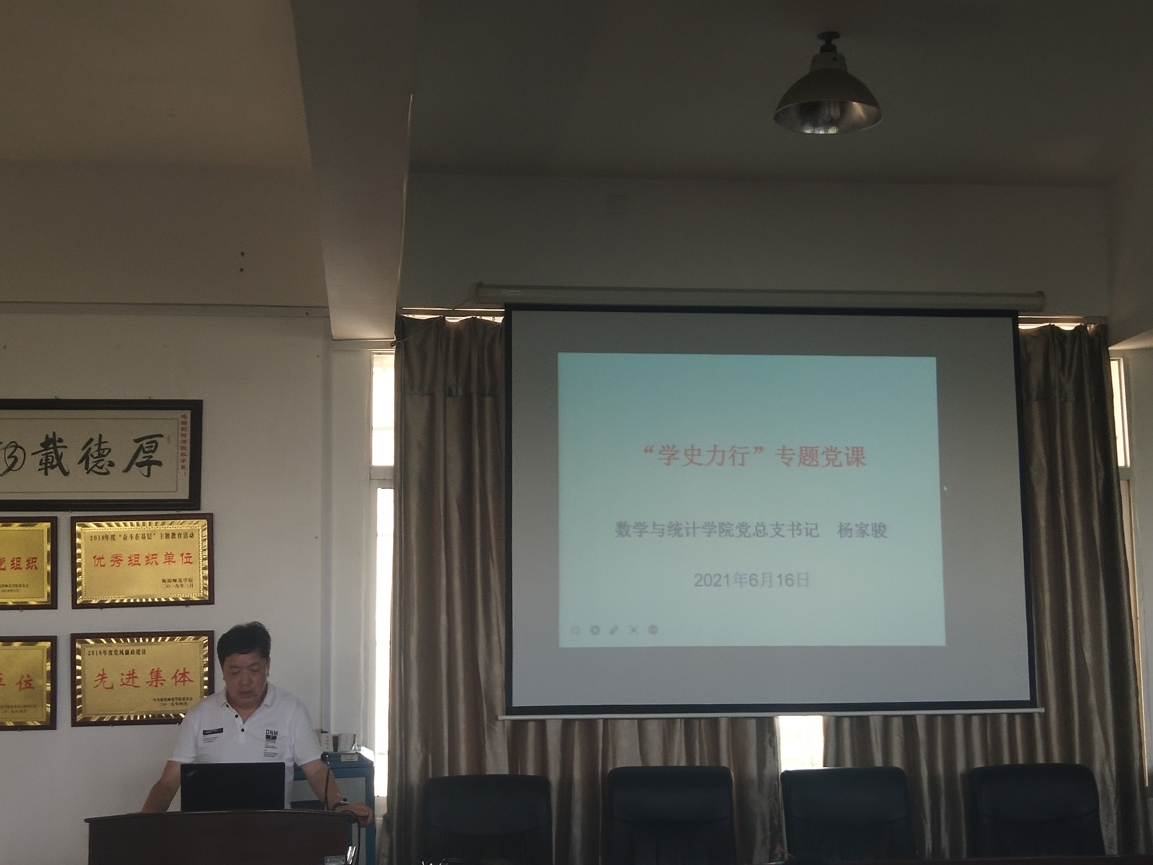 6月16日下午,402永利集团党总支书记杨家骏在理科1楼三楼会议室讲授党史学习教育之“学史力行”专题党课。学院党政班子、全体教职员工参加了学习。